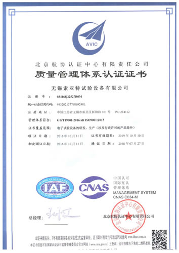 質(zhì)量管理體系認(rèn)證證書(shū)(GB/T19001-2008)